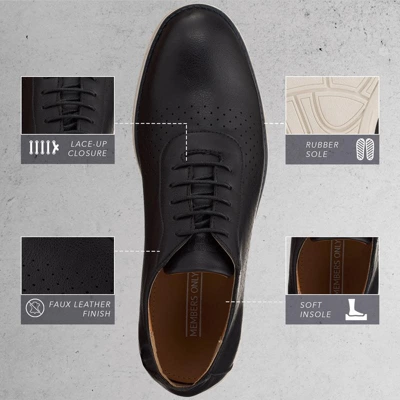 Look elegant by sporting these lace-up closure men’s grand oxford shoes from Members Only. They are ideal for any formal occasion and can be paired with your favorite trousers and a shirt for a stylish look. Beat the Monday blues with the right shoes. Go for a classic sophisticated look with the Grand Oxford Shoes with soft insole and durable rubber sole. These shoes provide faux leather finish.