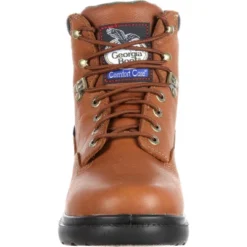 For a work boot that promises unmatched comfort, support, and durability, get the Georgia Boot Eagle One steel toe waterproof work boot.Highly abrasion resistant SPR leather and black textile make up the upper material. The collar and tongue are padded for comfort. The removable Comfort Cover tongue protector provides additional protection cross the top of the boot without causing the pinch points of a full leather tongue. The heel features the Counter Lock system which stabilizes the heel to prevent slippage and acts as a boot kick off.The steel toe cap is Ergo-Fit which means it is shaped to match the contours of your foot. This gives your toes more room to breathe without compromising protection and meets the ASTM F2413 standards for protective toe footwear.Inside is lined with high performance mesh and features the Georgia Waterproof System. Designed to keep water and muck out while still letting air in, your feet will stay dry when working in wet conditions. Also inside is the AMP footbed. This removable insole is a layer of memory foam over polyurethane and will feel like you’re walking on clouds.The rubber outsole is joined to the upper through a combination of cement and San Crispino construction. It has great oil, chemical, heat, abrasion and slip-resisting properties. It includes a wide platform TPU Shovel Shank to add durability and an EVA midsole for cushioning. This steel toe work boot additionally meets the ASTM F2413 standards for electrical hazard footwear.