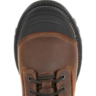 For a durable and trustworthy work boot, grab a pair of the 8″ Georgia Boot Rumbler composite toe waterproof work boots! The upper on this safety work boot is constructed from full- grain leather and features combination eyelet or hook hardware and an external TPU toe cap for added abrasion resistance and durability. The tongue and collar are padded for even more comfort. The removable leather Comfort Cover prevents pinch points while providing excellent protection.The inside of this lightweight composite toe work boot is lined with high performance mesh and is equipped with our guaranteed Georgia Waterproof System to keep your feet happy on damp days.TheErgo-Fit composite toe cap offers a contoured fit with more toe room than a traditional boot. It meets the standards for ASTM F2413 protective toe classification and the ASTM F2413 classification for electrical hazard footwear.The triple density outsole features an internal EVA midsole encapsulated in an external TPU heel stabilizer and rubber outsole. It’s not only slip and oil-resistant but has great heat and chemical resistant properties as well. It also includes a double ribbed steel shank for added stability and durability.For a great all-around work boot, snag these Georgia Boot Rumblers today!