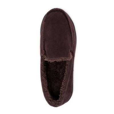 Kick back in easygoing MUK LUKS Men’s Faux Suede Slippers! A comfortable foam insole, warm faux fur lining, and classic slipper shape allow feet to relax in style. Featuring a durable indoor/outdoor sole, so these slippers can go everywhere you go. Wipe with damp cloth, Dry Flat, Do not Bleach. Imported. – TPR Sole- 100% Polyester Faux Fur Insole- 100% Polyester Faux Suede Upper- 100% Polyester Faux Fur Lining- No Heel- Brown/Solid- US Men’s Sizes S (8-9), M (10-11), L (12-13)