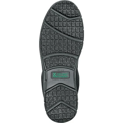Air mesh and KPU upper. DryKick waterproof membrane in toe area protects against food and liquid spills in the workplace. Spandex and tricot lining. PU cup footbed with memory foam. Phylon midsole. SR Max MaxTrax oil and slip resistant rubber outsole. ASTM F2892-18 EH compliant. Soft toe. No safety toe cap.