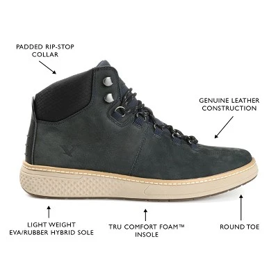 The perfect all-in-one boot, the Compass by Territory. Genuine leather materials with contrasting ripstop accents and an EVA/rubber hybrid outsole make this casual hiking-styled boot super durable. A 12 mm Tru Comfort Foam footbed and a cushioned collar offer a foot cradling fit. At Territory, we aim to design durable adventure-ready boots at sensible prices.