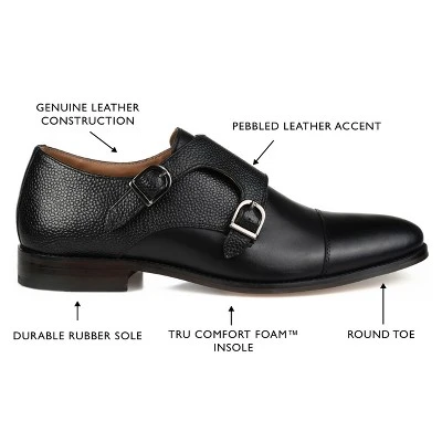 A pebbled texture gives dimension to this luxe monk strap shoe by Thomas & Vine. The Calvin features top-of-the-line authentic leather uppers and horseshoe-shaped buckles for an executive look. At Thomas & Vine, we’ve aimed to offer well-made, authentic leather shoes that strike a winning balance between sophistication and attainable pricing. Guided by the lifestyles of our customers, our collections include wide sizes, streetwear, work boots, and formal event looks, all with a classic-modern twist.