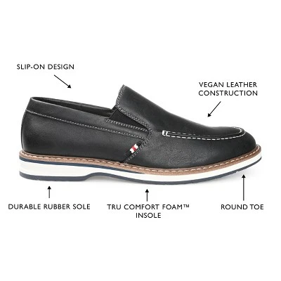 Loafers you can pair with both jeans and slacks. The Harrison by Vance Co. is a slip-on loafer crafted with vegan leather uppers detailed with a moc toe and stretch gore for a modern spin. With a rubber sole and 6 mm Tru Comfort Foam� footbed this style is made to support all day.
