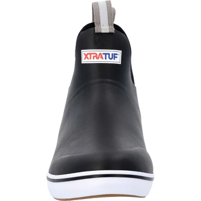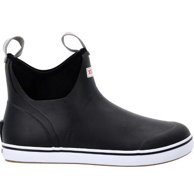 The Ankle Deck Boot collection, by XTRATUF, has a lightweight design with the same slip-resisting Chevron outsole found on the Legacy boot collection. These waterproof 6-inch boots have loops affixed to the vamp and ankle, helping you to place. Inside the boots have an XPRESSCOOL cooling liner that keeps feet comfortable in both cool and warm environments. An SRA-rated, slip-resisting outsole composed of an an exclusive rubber compound grips the floor surface, providing sure footing. This boot is constructed with hand-layered rubber, and so not classified as an XTRATUF commercial grade boot. For those looking for a commercial grade ankle height deck boot please search for the XTRATUF Wheelhouse Boot.